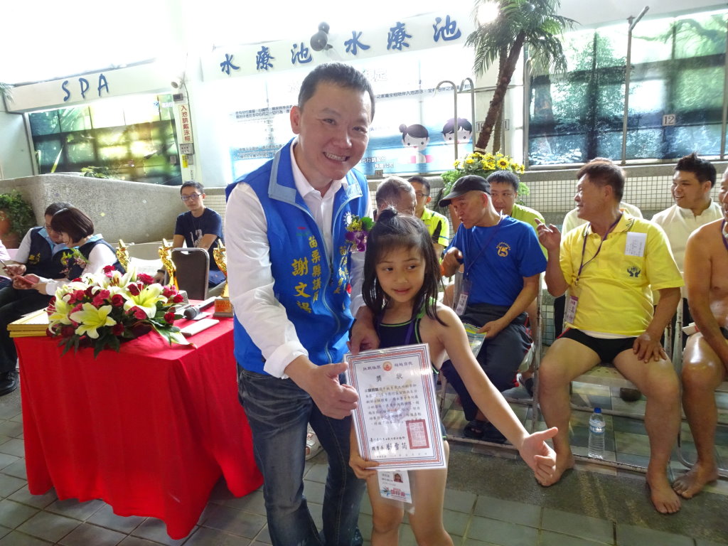 苗栗縣副縣長鄧桂菊、縣議員謝文禓等人到場致意,台灣慧行志工救生游泳協會理事長劉雪筠回憶,協會2007年開始舉辦救生競賽,社會普遍不熟悉,協會甚至贈送團體機票吸引參加,規模一年比一年大,更可喜是10歲以下選手,有16人賽,80歲以上6人,顯示救生教育向下扎根,也漸受銀髮族認同。