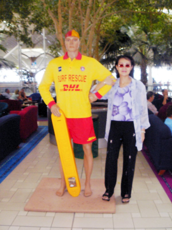 另一個有趣而值得一提的事情是,在澳洲昆士蘭州的布里斯班(Brisbane)機場,赫然看到一個身高二米以上、身穿水上救生協會制服的假人Model,他手上還拿著ㄧ副魚雷浮標,非常有精神地看著來來